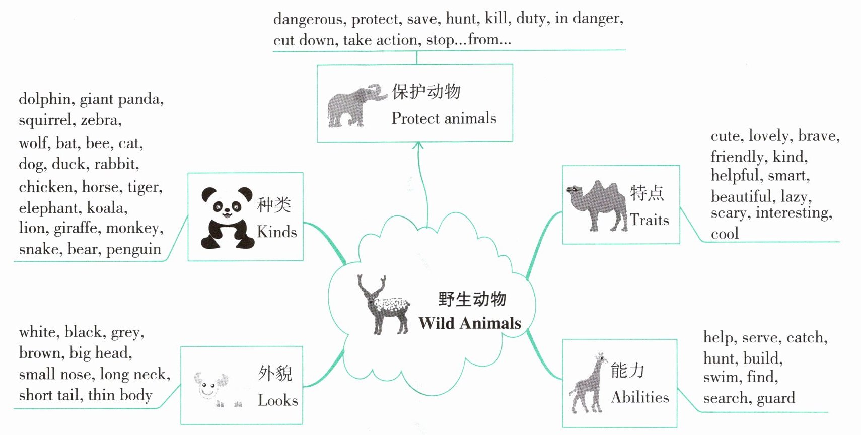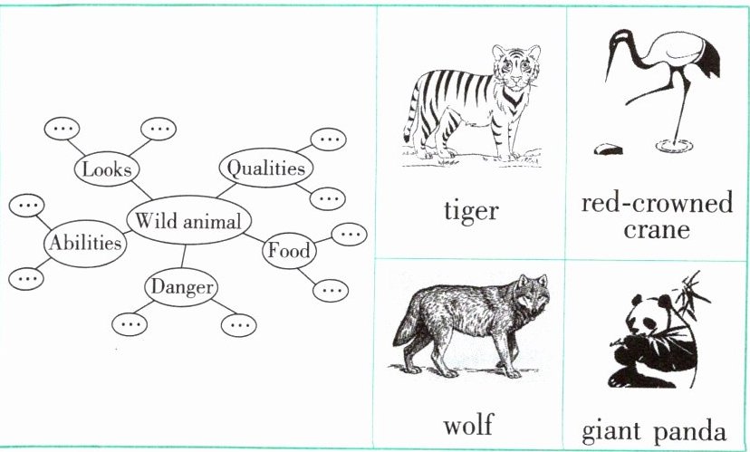 假设你们学校正在开展“动物保护周”系列活动,请根据思维导图的提示,从图片中选择一种野生动物进行介绍,并号召更多的人加入保护野生动物的队伍中来。