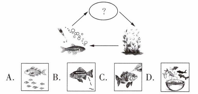 2 [新考法·图文转换题] Which picture should be in the circle to show the ecosystem in the fish tank?