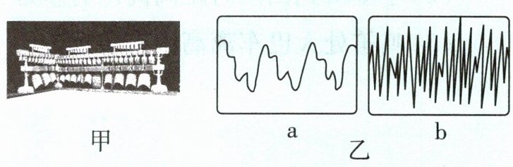 (2)敲打不同编钟发出的声音,有的清脆、明亮、悠扬,有的浑厚、深沉、气势磅礴,使听众觉得悦耳动听,属于______(填“乐音”或“噪声”)。其波形如图乙中______(填“a”或“b”)所示。