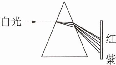 3 雨后的天空经常会出现彩虹,这种现象叫作光的______,最早研究这类现象的物理学家是______。如图所示,同学们在探究该现象过程中,让一束太阳光通过三棱镜,在白色光屏上可以看到红、橙、黄、绿、蓝、______、紫七种色光,且通过三棱镜时紫光的偏折程度比红光要______(填“大”或“小”)。