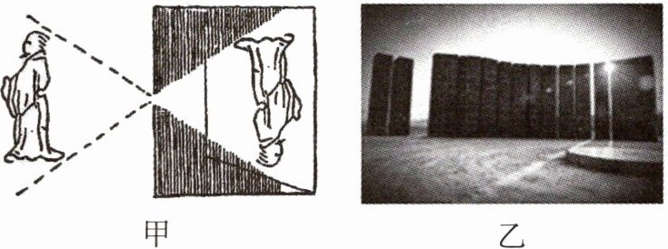 4新导向.古代文化 教材P43图2-14改编2000 多年前,《墨经》中记载了小孔成像的现象(如图甲所示),小孔成像时像的性质是______的像;山西陶寺古观象台(如图乙所示)由13