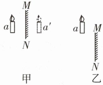 6 [一题多变·平面镜成像中的平面镜移动问题]小星在平面镜前放置一根蜡烛a,如图甲所示,蜡烛a在竖直放置的平面镜MN中所成像为a',现将该平面镜竖直向下移动一段距离至图乙所示位置,则蜡烛a在平面镜中( )
