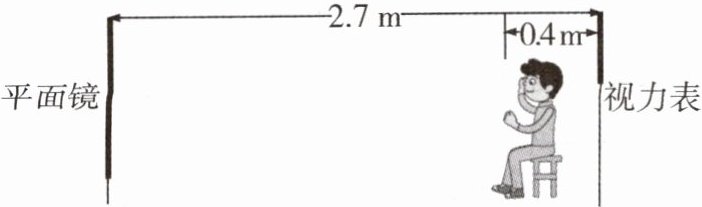 4 [2025 西安长安区期中改编]如图所示,检查视力时,视力表挂在房间东面的墙上,被测者识别西面墙上镜子里的像。下列说法中正确的是( )