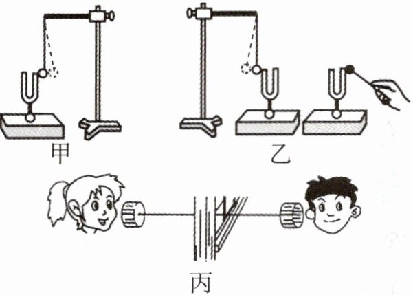 (2)如图乙所示,敲击右边的音叉,左边的音叉会把乒乓球弹起,说明声音可以在______中传播。