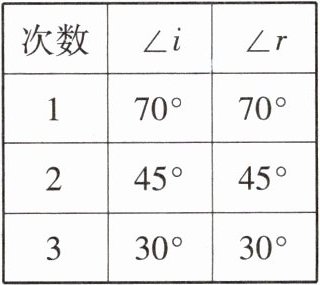 (3)改变光束入射的角度,多做几次,用不同颜色的笔记录每次光的径迹。取下纸板,测量ON两侧的$\angle i和\angle r$,将数据记录在上表中,根据数据得出的结论是______。