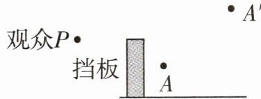 4 [2025 南京秦淮外国语学校月考]“仙女飞天”魔术表演中,位于P点的观众看到云雾中漫舞的仙女A',实质是挡板后的演员A在平面镜中的虚像,如图所示,请作出平面镜的位置,并补全光路图。