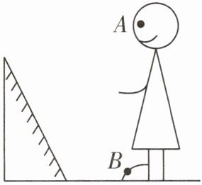 5 小美去鞋店买鞋,如图所示是她站在镜前试鞋的情景。请画出小美的眼睛A点看到鞋面B点在平面镜中所成像的完整光路图。