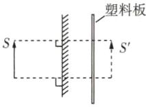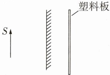 3 [2025 南京秦淮区期中]如图,物体S放在平面镜前,不透光的塑料板放在镜后,请画出S在平面镜中的像S'。