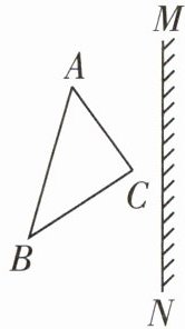 2 请在图中画出三角形ABC在平面镜MN中所成的像A'B'C'。