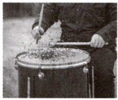 红豆跳动的高度 转换法 鼓面的振动幅度越大,鼓声的响度越大