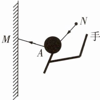 9 [2023 随州中考]王叔叔想看看理发后头发长短情况,他要来一面小镜子,如图,他背朝墙上的大镜子手握小镜子(未画出)略微仰头,当小镜子处于额头斜上方时他看到了自己的后脑勺。假设一条光线从后脑勺的A点射向大镜子上的M点,反射到小镜子上的N点,又反射到人眼。请画出M到N之间的光线、小镜子上的法线以及小镜子的镜面(注意角度)。