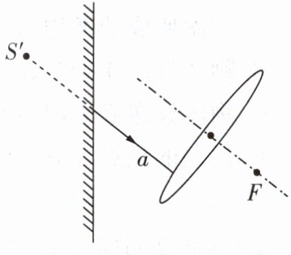 6 [2025 苏州高新区期中]如图所示,S'是光源S在平面镜中的像,a是光源S发出的光线经平面镜反射后,平行于凸透镜主光轴射向凸透镜的光线。请画出:
