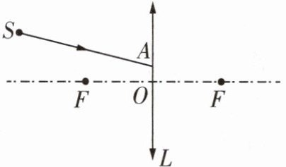 (2)画出由点光源S射出的光线SA经凸透镜折射后的光线。