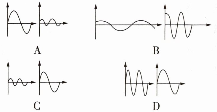 3 [2025 南京外国语学校期中] 男低音歌唱家大声独唱,女高音歌唱家轻声为他伴唱,则两位歌唱家的声音特征分别对应下列波形图组的是(纵轴表示振幅,横轴表示时间)( )