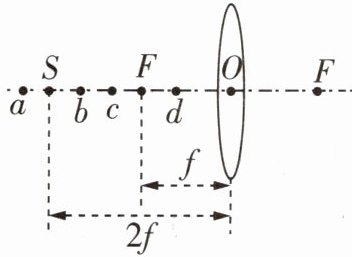 1 某同学做“探究凸透镜成像的规律”实验时,所用凸透镜的焦距为f,保持凸透镜位置不变,如图所示,先后使烛焰位于a、b、c、d四点,并分别调整光屏的位置,关于分别在a、b、c、d四点时的成像情况,他归纳出下列说法,其中错误的是( )