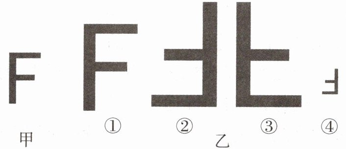 3 [2024 北京八中期中]将一个F形LED灯(如图甲所示)放在离凸透镜50 cm处(凸透镜的焦距为10 cm),然后逐渐靠近凸透镜的过程中,人眼透过凸透镜观察到几个不同的像(如图乙所示),则几个像出现的先后顺序是( )