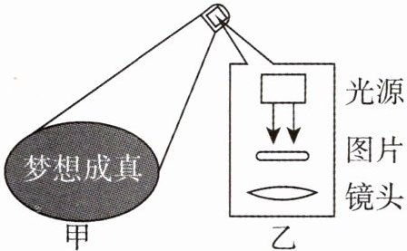 4 [2024 苏州中考]如图甲所示是公共场所的宣传投影灯,装在高处的投影灯照在地面上出现图案,其内部结构如图乙所示。下列说法正确的是( )