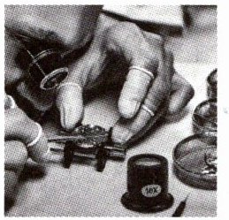 5 [2024 包头中考]工匠师维护精密仪表时,会在眼睛前戴一个凸透镜,便于观察仪表的细微之处,如图所示。