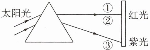 (1)红外线具有热效应,它位于红光外侧,所以温度计放在①区域示数会升高;要使温度计的示数变化更明显,可以增强温度计玻璃泡的吸热效果,由于不透明的黑色物体可以吸收所有的色光,可以增强吸热效果,因此可将温度计的玻璃泡涂成黑色。