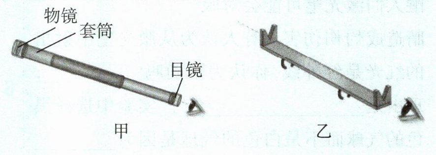 |驱动性问题2|2 如图甲所示,选择两个刚好可以套在一起的圆筒,分别把物镜和目镜固定在两个圆筒的一端。如图乙所示,制作寻星装置,套在望远镜套筒上。观察时,首先通过寻星装置找到目标星球,再通过望远镜观察,则寻星装置的原理是___。|