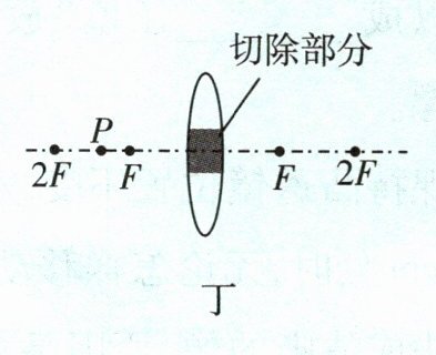 (15)如图丁所示,若切除凸透镜中间的阴影部分,再将剩余部分靠拢放在一起,蜡烛在P点时将成______个像,成像______(填“是”或“不是”)完整的。