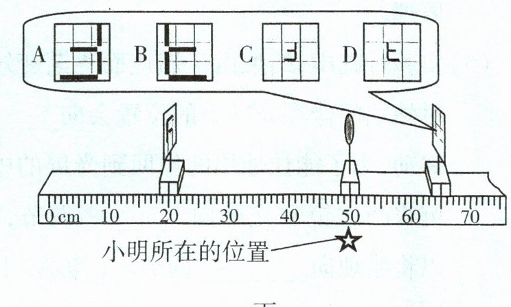 (9)小明将蜡烛换成F形光源,调整了光源和光屏的位置,在光屏上仍可观察到清晰的像,如图丙所示,则小明看到的像应是______(填字母)。