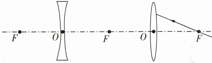 [解析] 由题图可知,凸透镜的左焦点和凹透镜的右虚焦点重合。过凸透镜焦点的光经凸透镜折射后平行于主光轴射出。平行于凹透镜主光轴的光线,经凹透镜折射后,折射光线的反向延长线经过凹透镜的虚焦点。