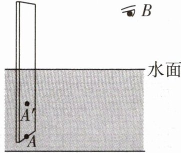 9 [2023 青岛中考]“若在水边⾛,安全记心头。”看起来不深的池水,也不要贸然下去。请在图中画出上述现象的光路图,并标出入射角 i。
