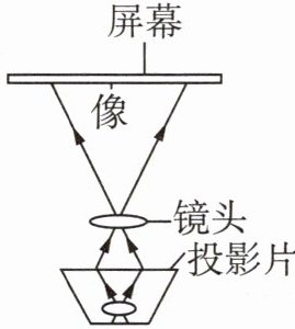(2)凸透镜成实像时,物远像近像变小,将投影片到镜头的距离调大,物距变大,同时将镜头到屏幕的距离调小,像距减小,当屏幕上再次出现清晰的像时,像变小。