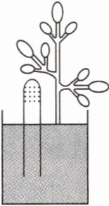 3 [2024 常州中考改编]盆栽养护应遵循“土壤含水不浇水,土壤干时要浇水”的原则。春季,小明自制“土壤含水显示仪”,探测花盆内土壤是否含液态水。如图所示,中午将试管倒插入土壤深处,傍晚发现试管内上端出现水珠,说明土壤含液态水。从土壤含液态水到试管内出现水珠,发生的物态变化是先______,后______。