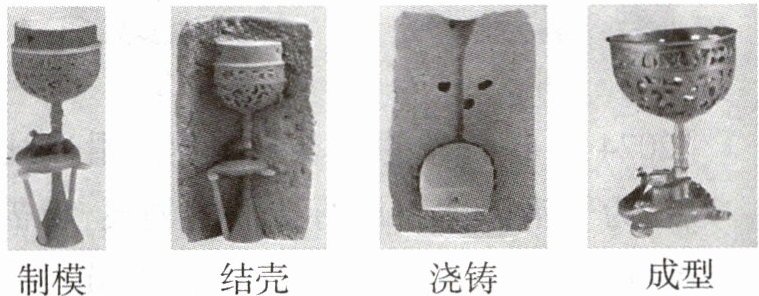 2 [新导向·古代文化]《天工开物》中记载的精密铸造法——“失蜡法”,可追溯至春秋时期,做法是:制模→结壳→浇铸→成型,即用蜡做成铸件的模型,再用耐火材料填充泥芯和敷成外范。加热烘烤后,蜡模熔化流出,使整个铸件模型变成空壳。再往内浇灌熔液,便铸成器物。以下说法错误的是( )
