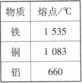 3 [新情境][2025咸阳秦都中学月考]在汽车行业,“热熔紧固”技术得到广泛应用,如图甲、乙、丙所示,利用电动工具使螺钉高速旋转并压向金属板材,螺钉尖端与板材表面摩擦生热,板材局部______(填物态变化名称),而螺钉尖端仍然坚硬,螺纹完全拧入板材后螺钉停止转动,板材局部______(填物态变化名称)牢牢套住螺钉。利用该技术,铜螺钉可以拧入表格中由______(填“铁”“铜”或“铝”)制作的板材中。