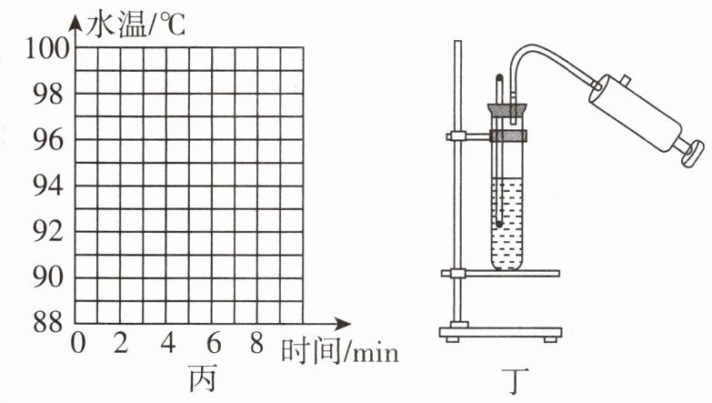 (2)记录的数据如下表所示,用表中数据在图丙上作出水温随时间变化的图像。