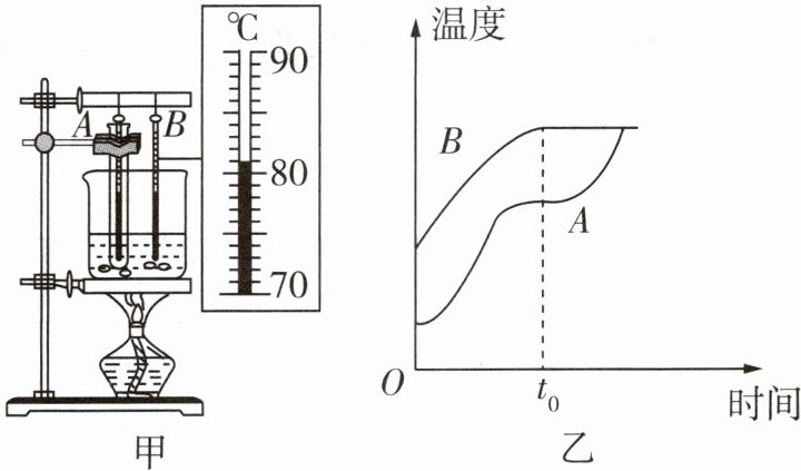 (5)t₀时刻烧杯中的水开始沸腾,分析图像可知,水沸腾的特点是吸收热量,______。t₀时刻试管中的物质处于______态。
