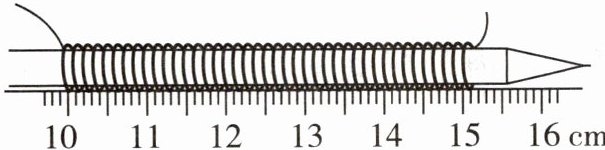 3 某同学测量细钢丝的直径时,第一次将细钢丝在铅笔上紧密排绕 41 圈后用刻度尺测量,如图所示,测得钢丝圈的长度是______cm,细钢丝的直径是______mm。若由于疏忽,在数钢丝圈数时少数了一圈,则所得结果将______(填“偏大”或“偏小”);若在绕圈时钢丝之间有空隙,则所得结果将______(填“偏大”或“偏小”);若第二次测量时排绕了 5 圈,两次测量相比,第______次测量的误差较小。