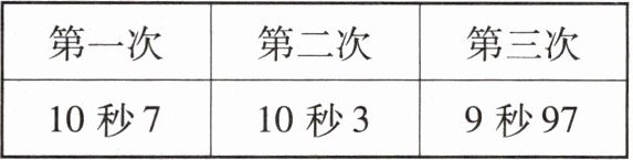 (2)下面表格数据是谢震业在亚运会上的三次成绩,根据成绩,可判断出谢震业第______次跑得最快,判断方法是______。