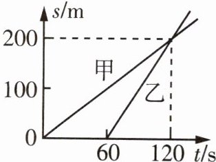 [解析] 由题图知,甲、乙在距离出发点200m处相遇,甲在120s内运动200m,而乙在120s - 60s = 60s内运动了200m,通过的路程相同,乙用的时间少,由$v=\frac{s}{t}$可知,乙的速度较快。