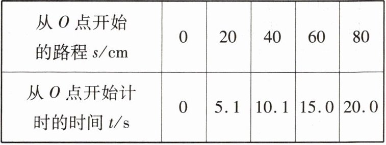 | 从O点开始的路程s/cm | 0 | 20 | 40 | 60 | 80 |