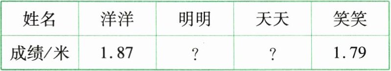 4.秋分时节,气候宜人,正是举办秋季运动会的好时机。下表是四位同学立定跳远的成绩,请选择合适的信息,计算出明明的成绩。(6分)