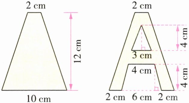 5 小欣用一张梯形纸板剪了一个大写英文字母“A”(如图)。字母“A”的面积是多少?