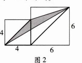 第二步:以小正方形的对角线作为三角形的底,在平行线内再画一个三角形,如图2。