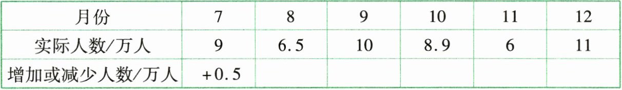 1. 行知劳动教育研学基地每个月参加实践活动的预计人数都是8.5万人,“增加人数”用正数表示,“减少人数”用负数表示,请将下表填写完整。(5分)