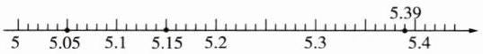 (2)在直线上描出表示$5.05$、$5.15$、$5.39$的点。