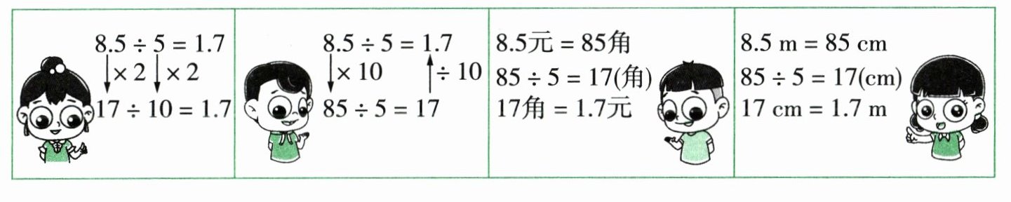 2. (新题型)下面是四位同学在计算$8.5÷5$时的不同思考过程,其中错误的是( )。