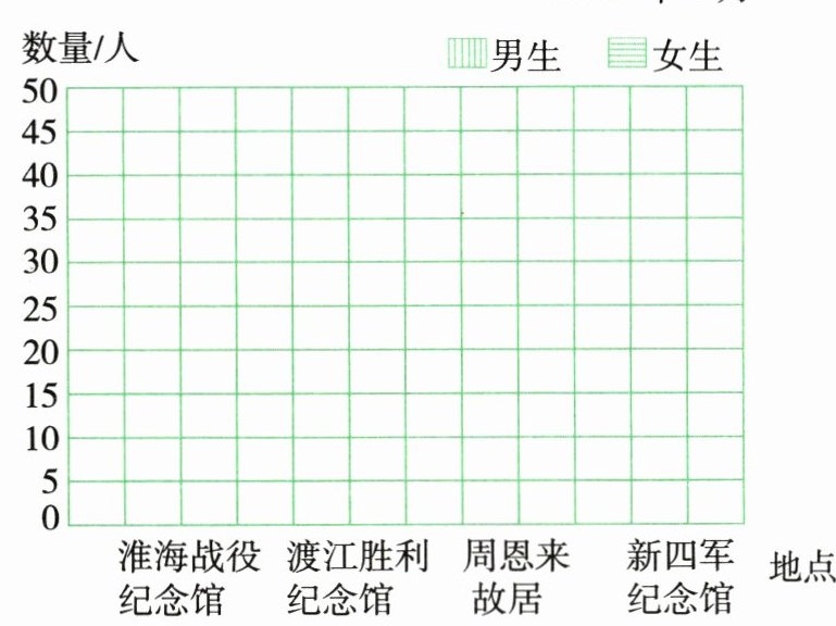 | 数量/人 地点 性别 | 合计 | 淮海战役纪念馆 | 渡江胜利纪念馆 | 周恩来故居 | 新四军纪念馆 |