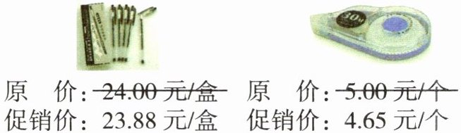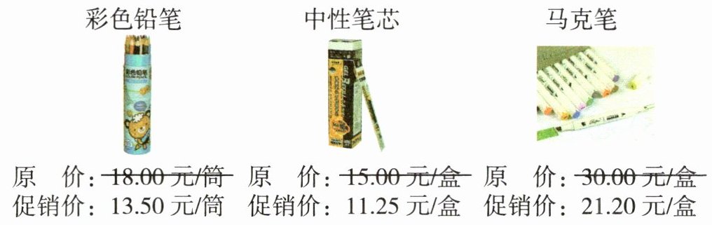 (2)(答案不唯一)58−28.53=29.47(元) 21.20+11.25=32.45(元) 答:李老师可能再购买一盒中性笔芯和一盒马克笔。 点拨 达到58元就包邮,可以先求出李老师原定计划购物的钱数与58相差多少,再根据这个相差数寻找李老师接下来可能购买的文具。
