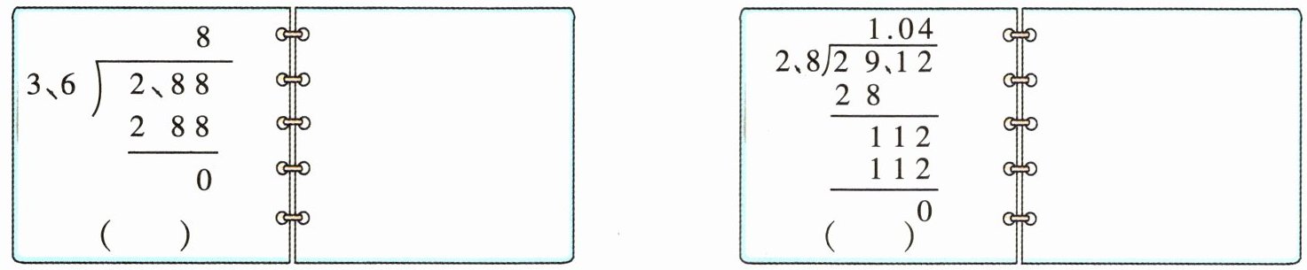(1)计算$1.05÷0.25$时,把除数转化成25,被除数应转化成