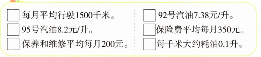 6 (情境题·生活情境)(1)李叔叔的汽车此前一直使用92号汽油,现在他决定改用95号汽油。请你帮他算一算,以原先每月的汽油消耗量预算,现在每月能够加多少升汽油呢?