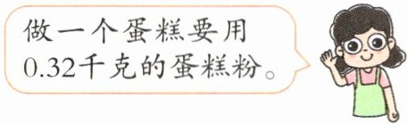 (2)一袋蛋糕粉重$5$千克,已经用掉了$2.24$千克。李阿姨用剩下的蛋糕粉最多还能做几个这样的蛋糕?