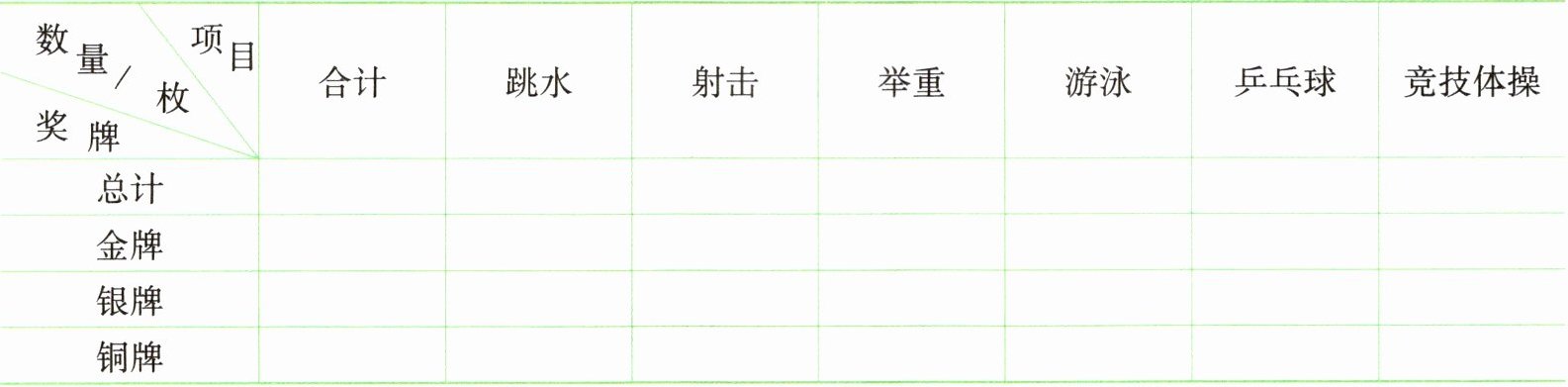 )项目获得的奖牌数最少。(3)表中的这6个比赛项目共获得金牌(
